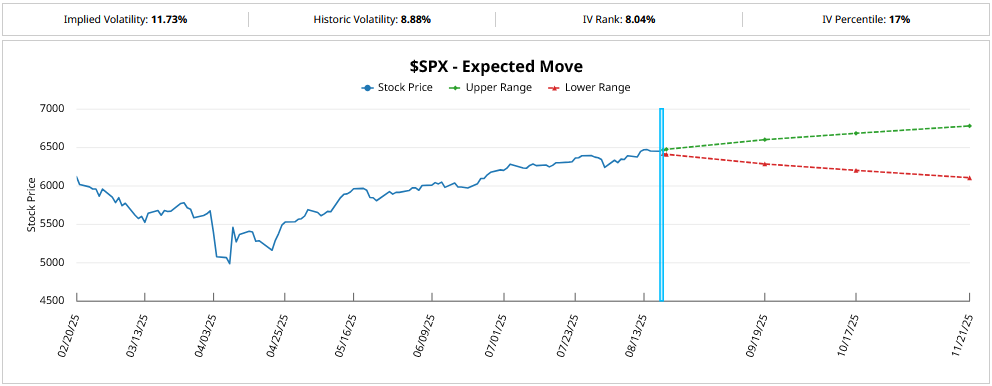 The range of the expected move for the SPX into the 9-19-2025 expiration, based on option pricing (see previous updates), is between 6,598 and 6,282, or a range of +/-2.45%.