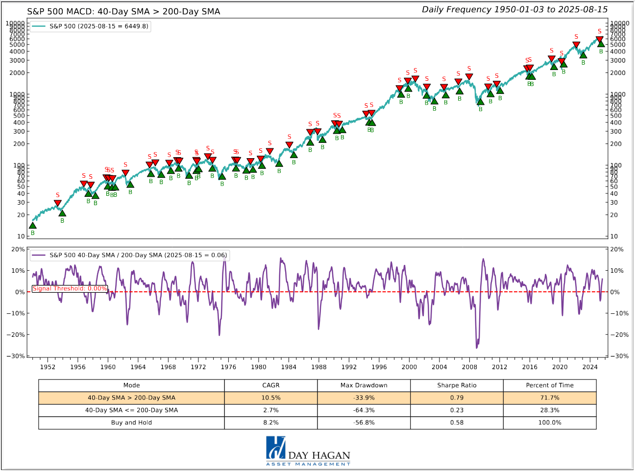 This material is for educational purposes only. Further distribution is prohibited without prior permission. Please see the information on Disclosures and Fact Sheets here: https://dhfunds.com/literature. Charts with models and return information use indices for performance testing to extend the model histories, and they should be considered hypothetical. All Rights Reserved. (© Copyright 2025 Day Hagan Asset Management.) Data sources: Day Hagan Asset Management, 3Fourteen Research, J.P. Morgan, Goldman Sachs, Barchart, StreetStats, Atlanta Fed, St. Louis Fed, Koyfin, Yardeni, S&P Global, SPDR, FactSet.