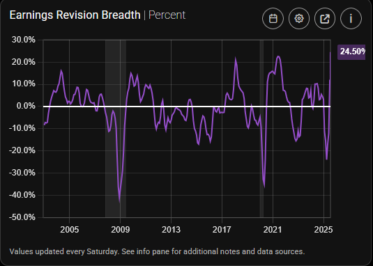 As shown in the chart below, revisions have been overwhelmingly positive.