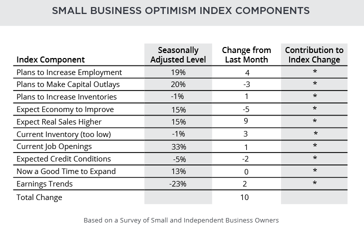 The NFIB survey is one of our favorite data series. Small companies have historically created about two-thirds of all jobs. The most recent update indicates that Small Business Optimism has improved.