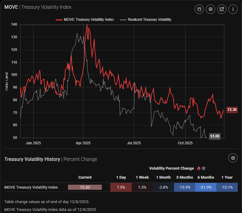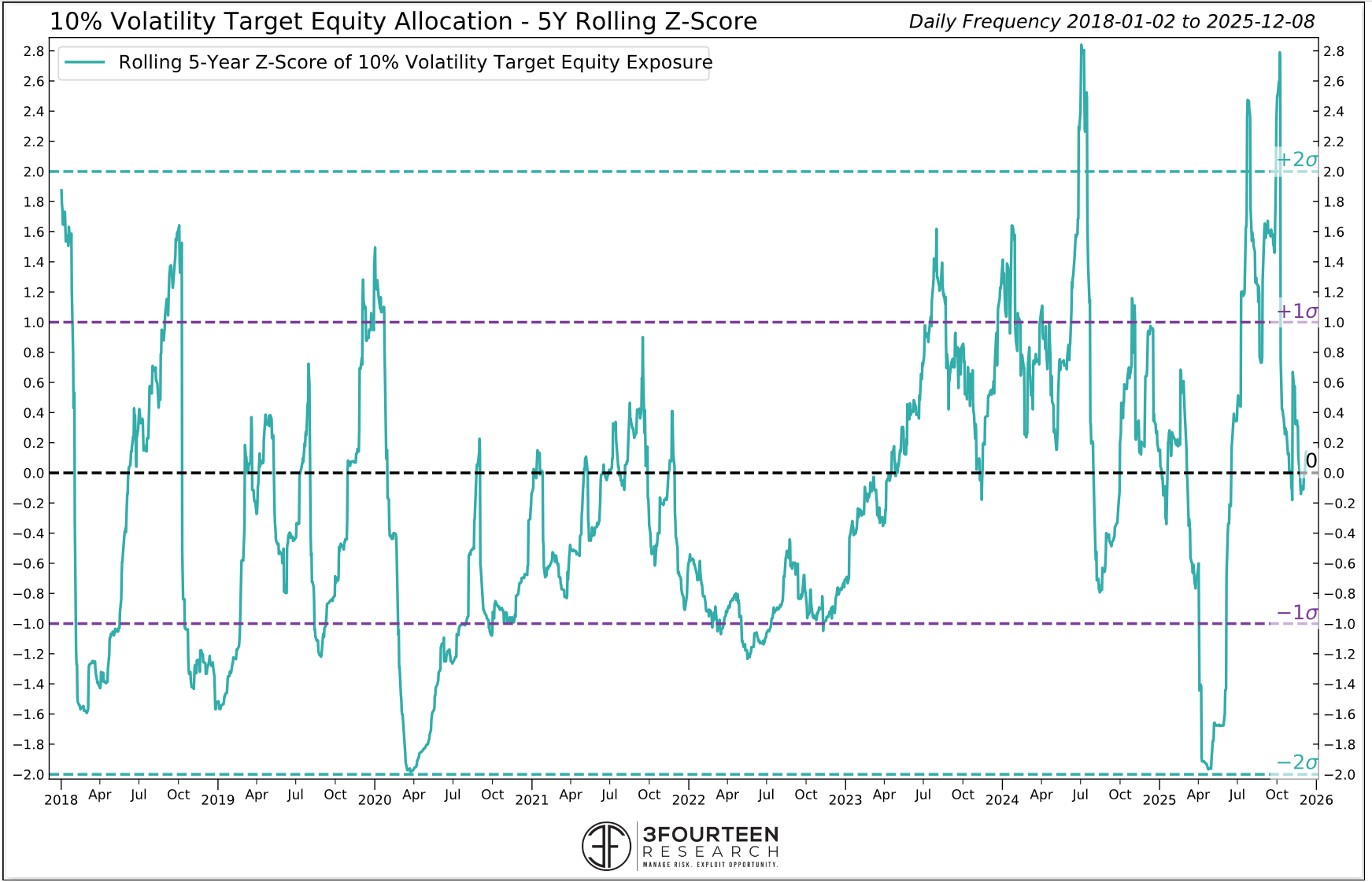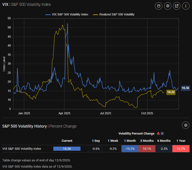 Volatility has spiked twice since the beginning of October. In mid-October, due to renewed tariff concerns, and in mid-November, due to anxiety over large-cap growth and AI stocks. Both spikes were short-lived, as protective puts and hedging activity accelerated (which we featured at the time). Volatility episodes like these often reveal fragility — not necessarily structural crises, unless confirmed by other indicators we track. They highlight where risk is concentrated (rate-sensitive growth, leverage, liquidity), giving investors a chance to reassess exposure or add hedges.