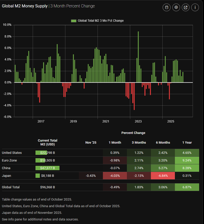 We would also note that economic liquidity has been improving. Along with a pause in QT and the prospects for lower rates, the global M2 money supply has been increasing. This is supportive.