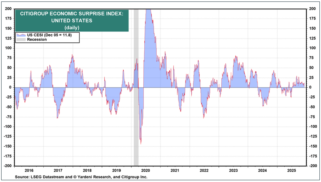 The Citigroup Economic Surprise Index confirms that economic releases over the past three months have, on average, outperformed expectations.