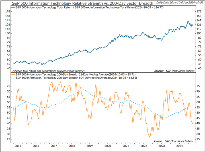 Figure 7: Relative breadth for the Consumer Staples sector indicates broader-based relative weakness.
