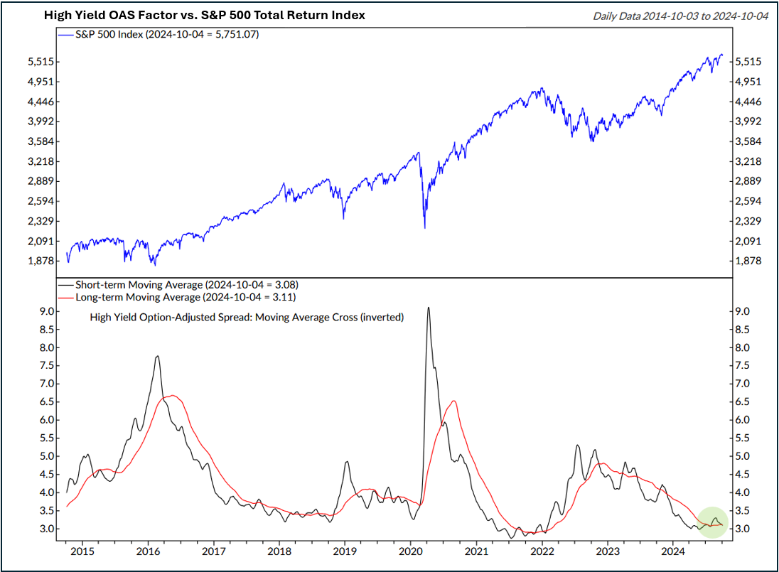 Figure 2: Declining high-yield OAS is supportive of equities.