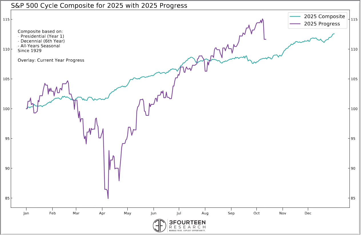 The markets are now trying to digest 1) “Massive Tariffs on China” (President Trump’s term) of “100%” due to China’s new rare-earth mineral export restrictions, 2) a government shutdown (reducing the availability of economic data), and 3) potential uncertainty around upcoming Q3 earnings reports. (Not to mention the impacts to the Japanese carry trade, geopolitical risks, etc.)