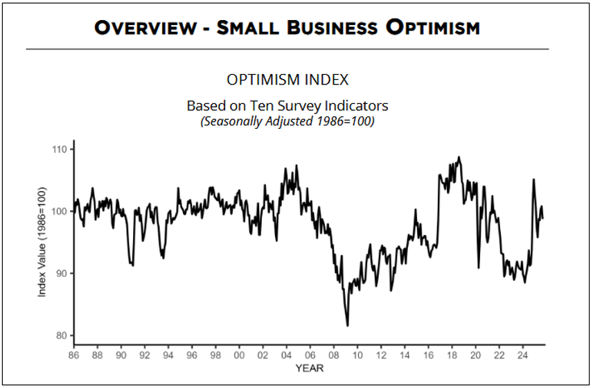 Figure 13: NFIB Small Business Optimism Index declined but is still mid-range. (Source: NFIB Research Center)