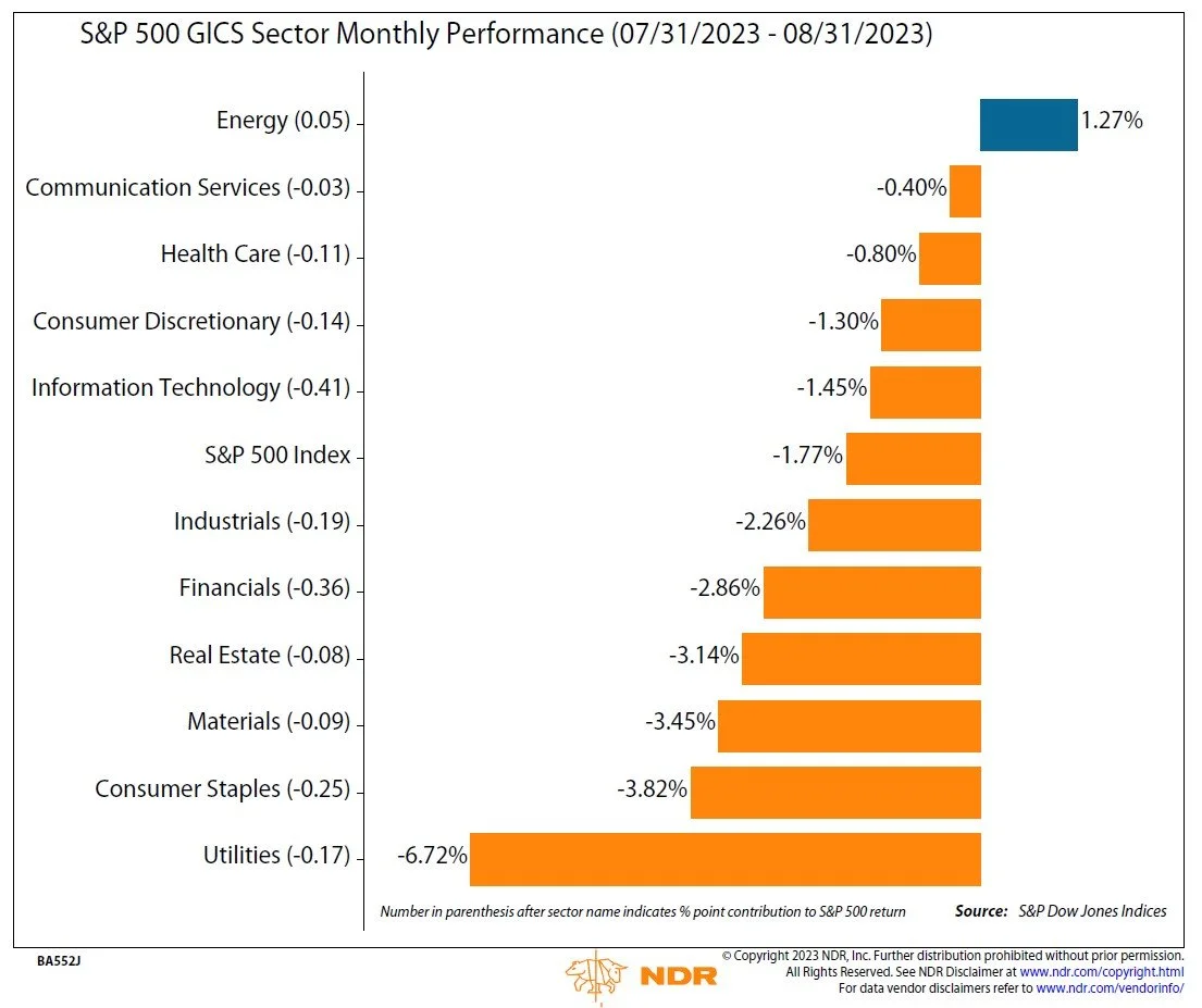 Figure 3: S&P 500 GICS Sector Monthly Performance (07/31/2023-08/31/2023)