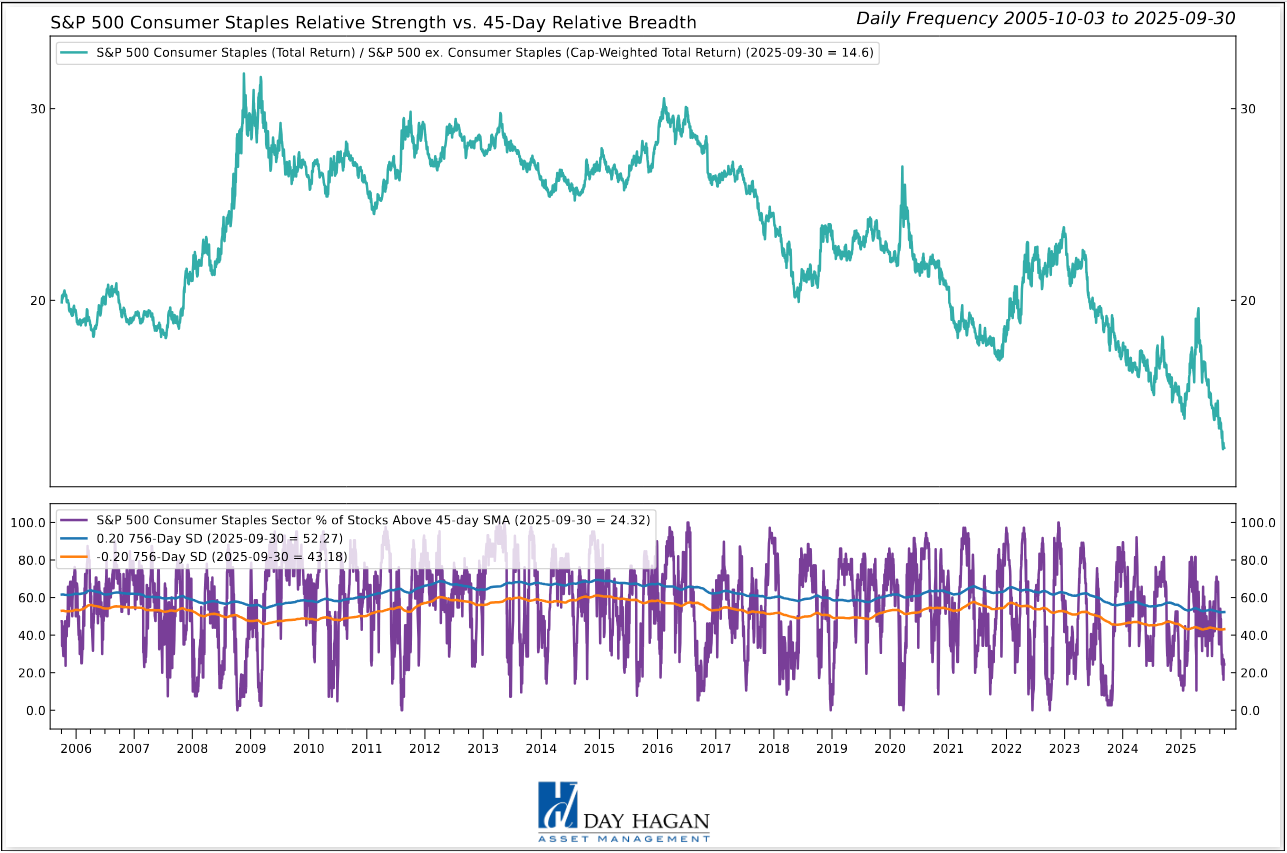 Figure 2: The relative breadth of Consumer Staples has reached “so bad its good” levels.